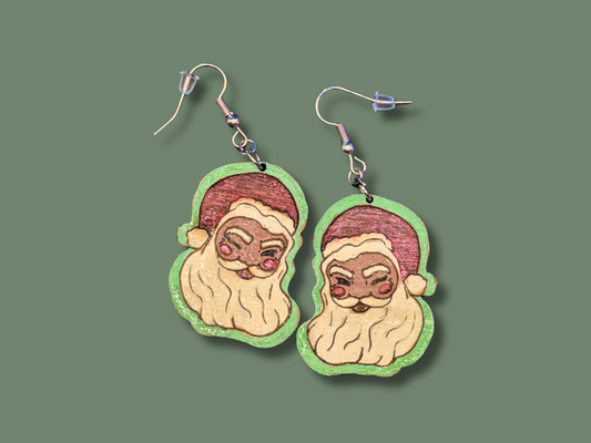 Nostalgic Winking Santa Earrings in Super-Light Wood